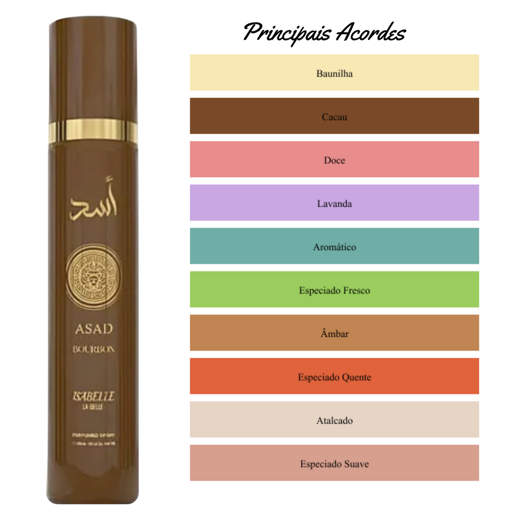Descubra o Body Splash Asad Bourbon de Isabelle la Belle, uma fragrância que transcende gêneros e transporta você a um mundo de aromas sedutores.