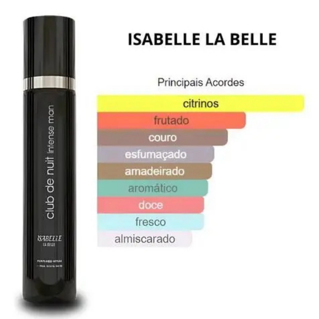 Descubra o Body Splash Perfume Árabe Club de Nuit Intense, uma fragrância masculina criada pela marca Isabelle la Belle.
