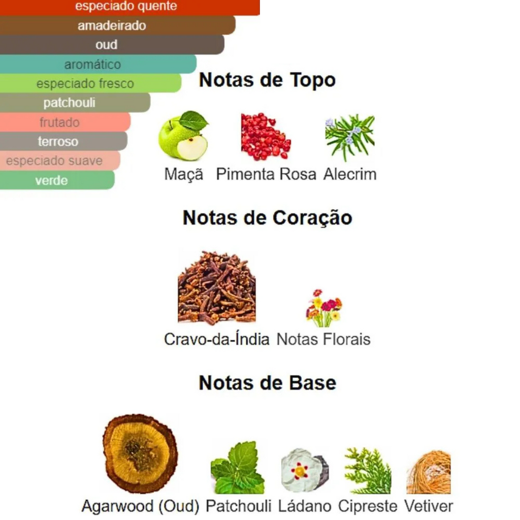 - Coração: Acordes amadeirados e toques exóticos, perfeitos para homens que apreciam um perfume misterioso e sedutor.